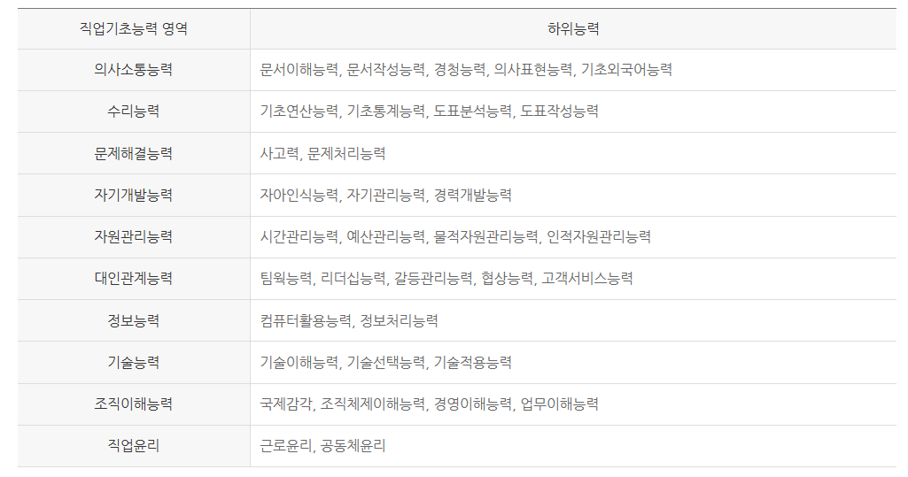 특정 직무에 지원을 하게되면 해당하는 직무에 필요한 직업기초능력을 시험으로 보게될 거에요!