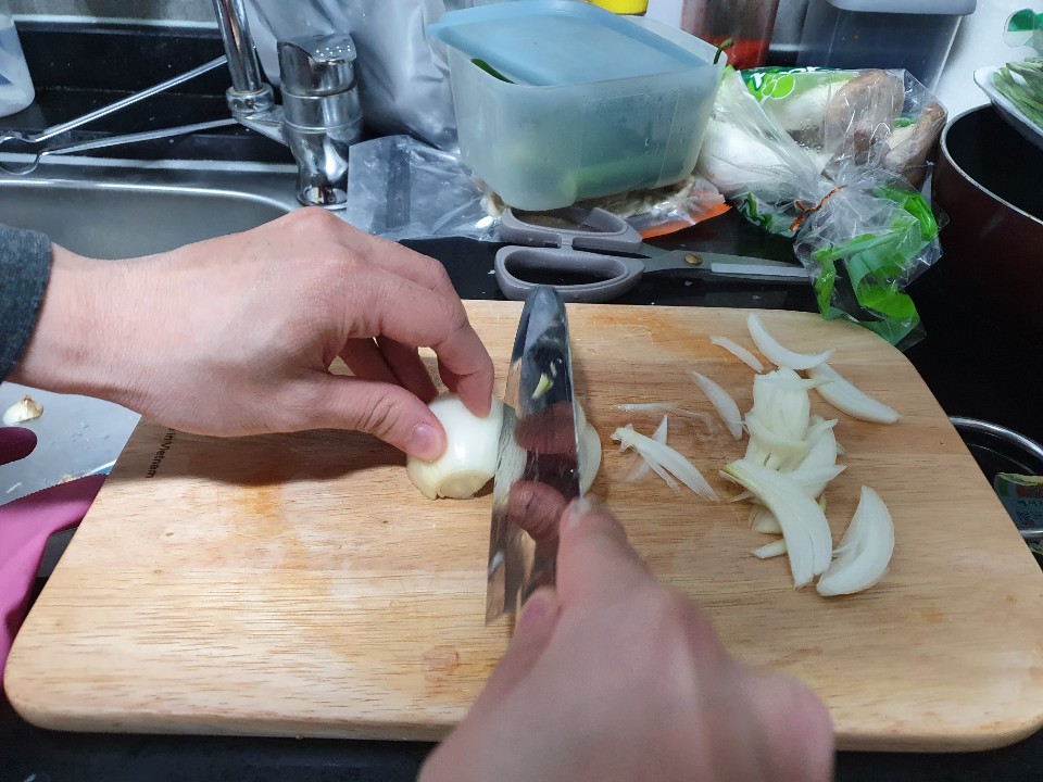 1. 대파와 양파를 길쭉하게 썰어주세요!