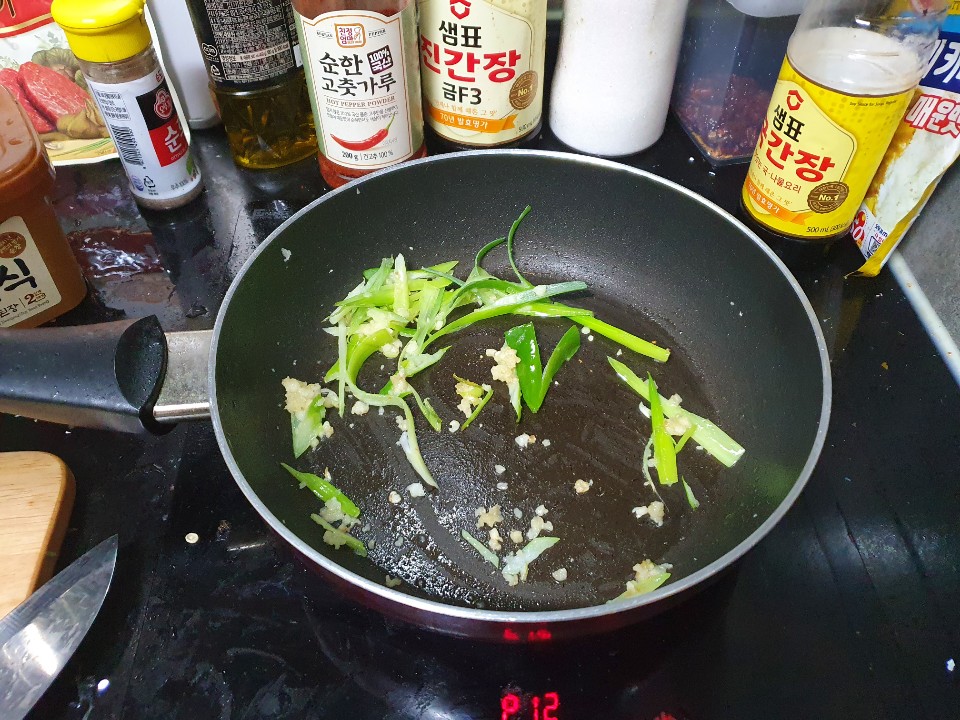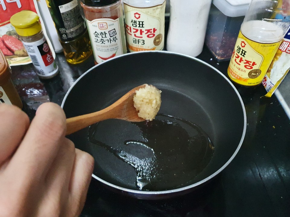 4. 다진마늘 반큰술을 달궈진 식용유에 볶아주세요!