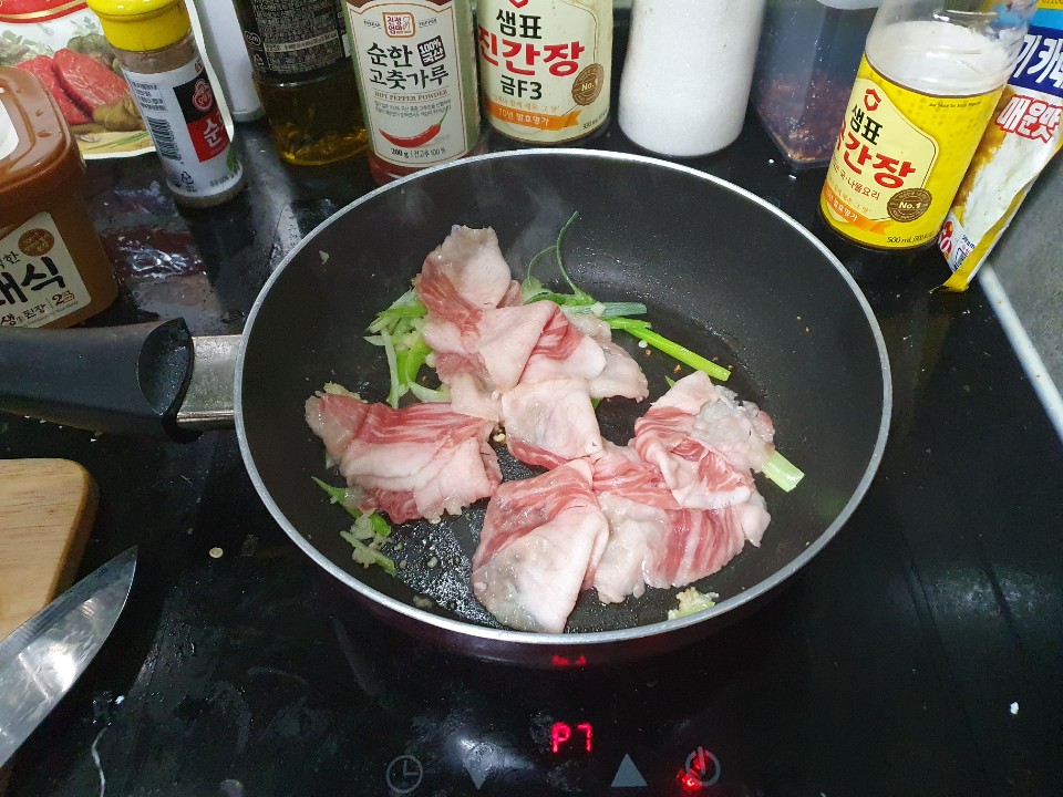6. 차돌박이를 먹고싶은 만큼 넣고 구워주세요!