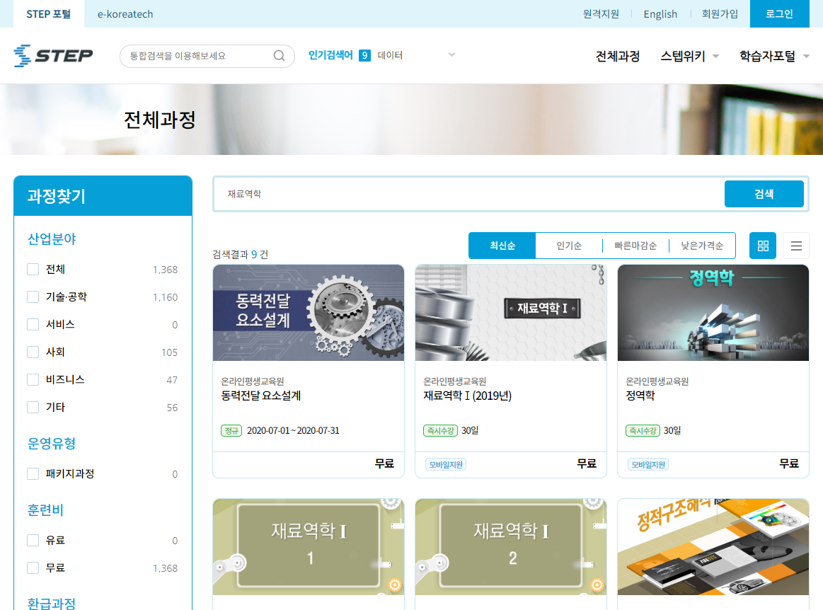 스탭 메인 포털에서 재료역학을 검색하시면