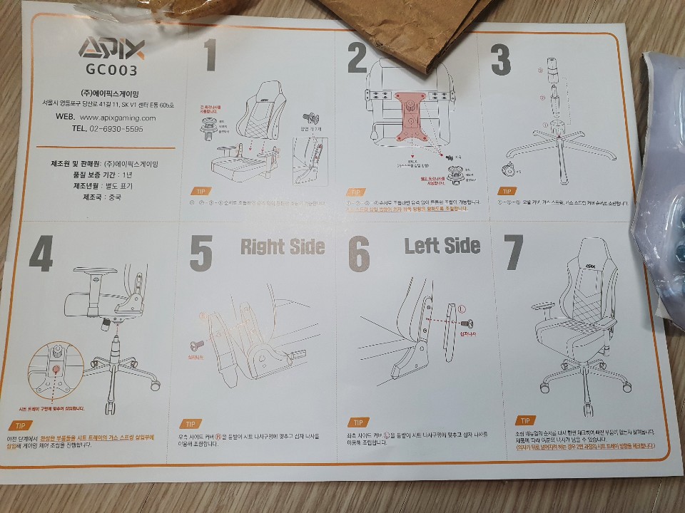 에이픽스 게이밍 의자 GC003의 박스는