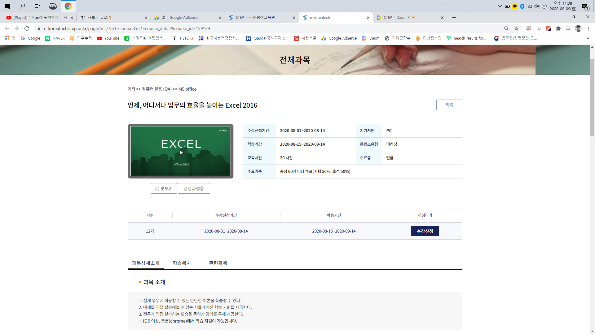 'EXCEL' 을 검색하시면 다양한 엑셀 공부하기