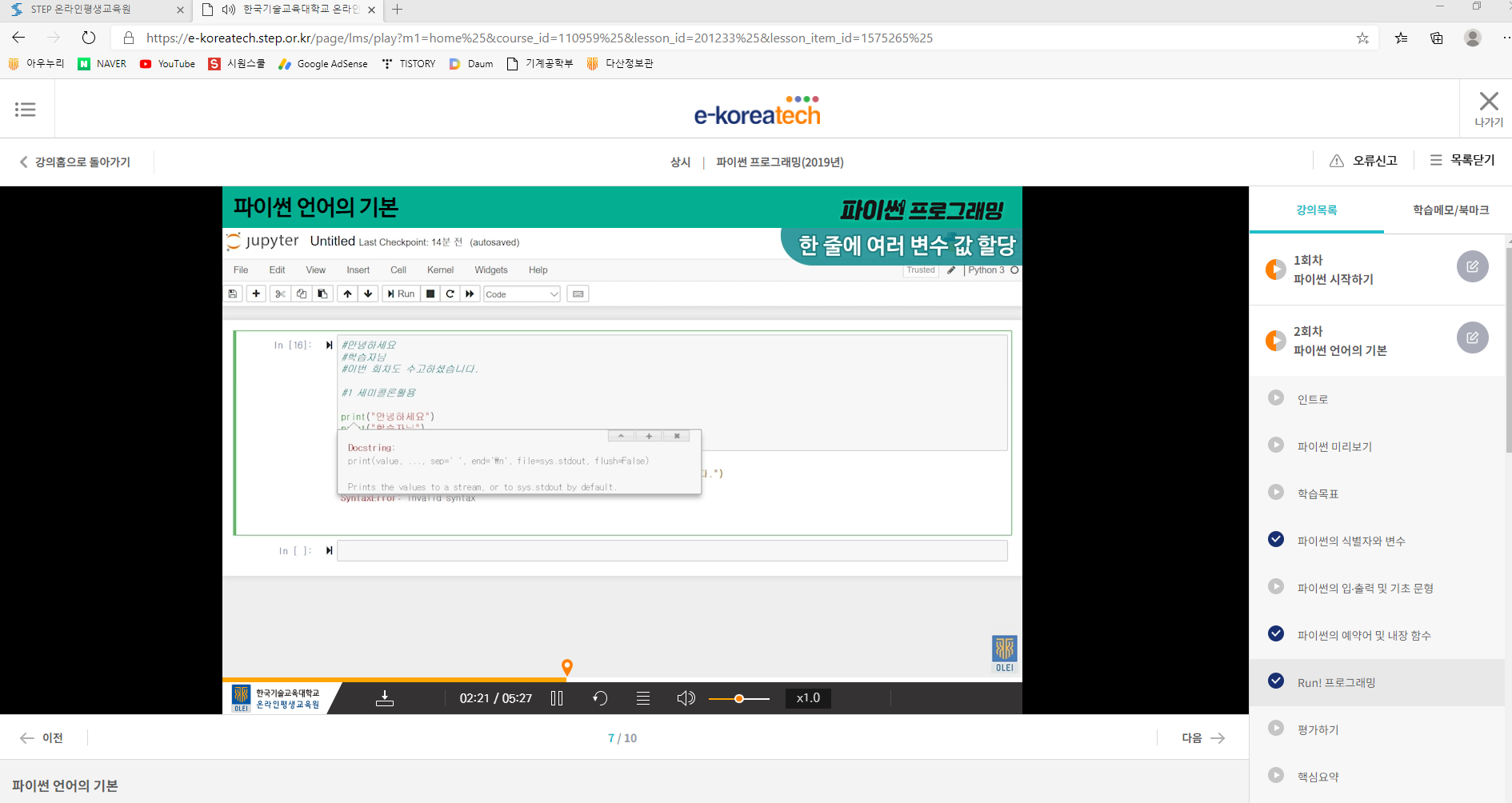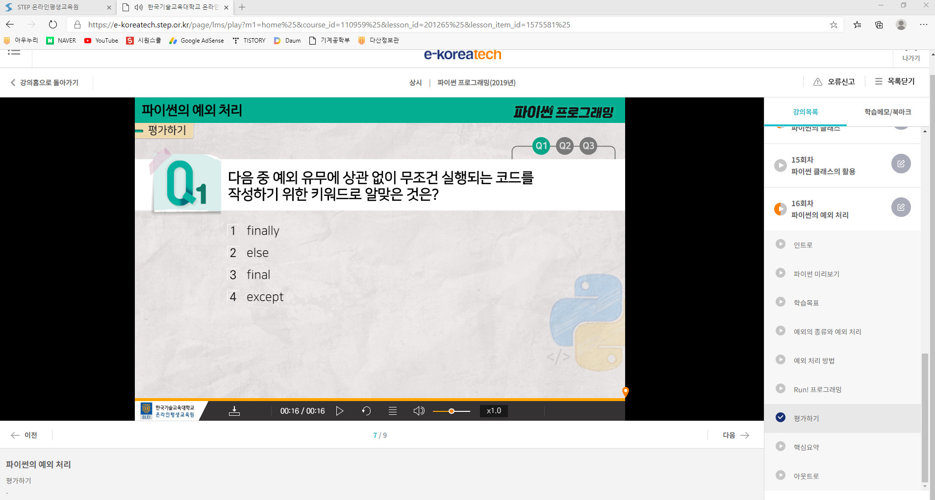 추가로 실제 STEP에서 파이썬 관련 강의를