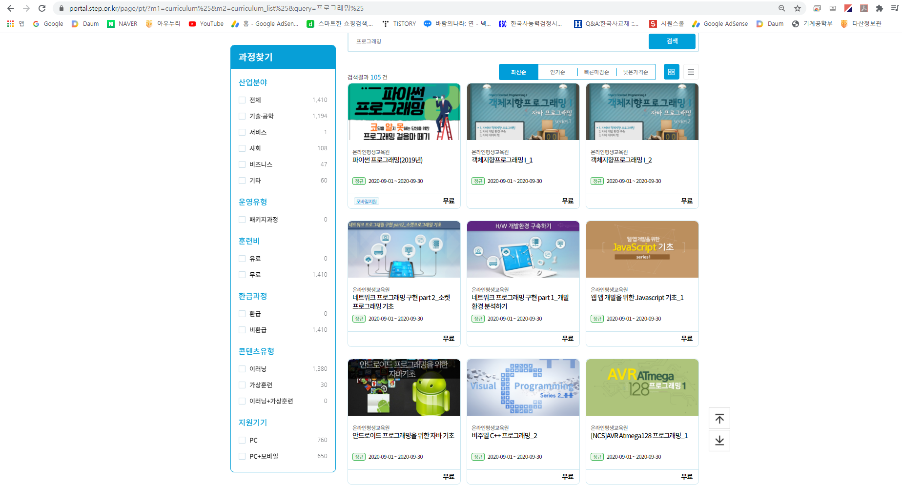 과정 검색창에 '프로그래밍' 라고 검색을 해주세요!