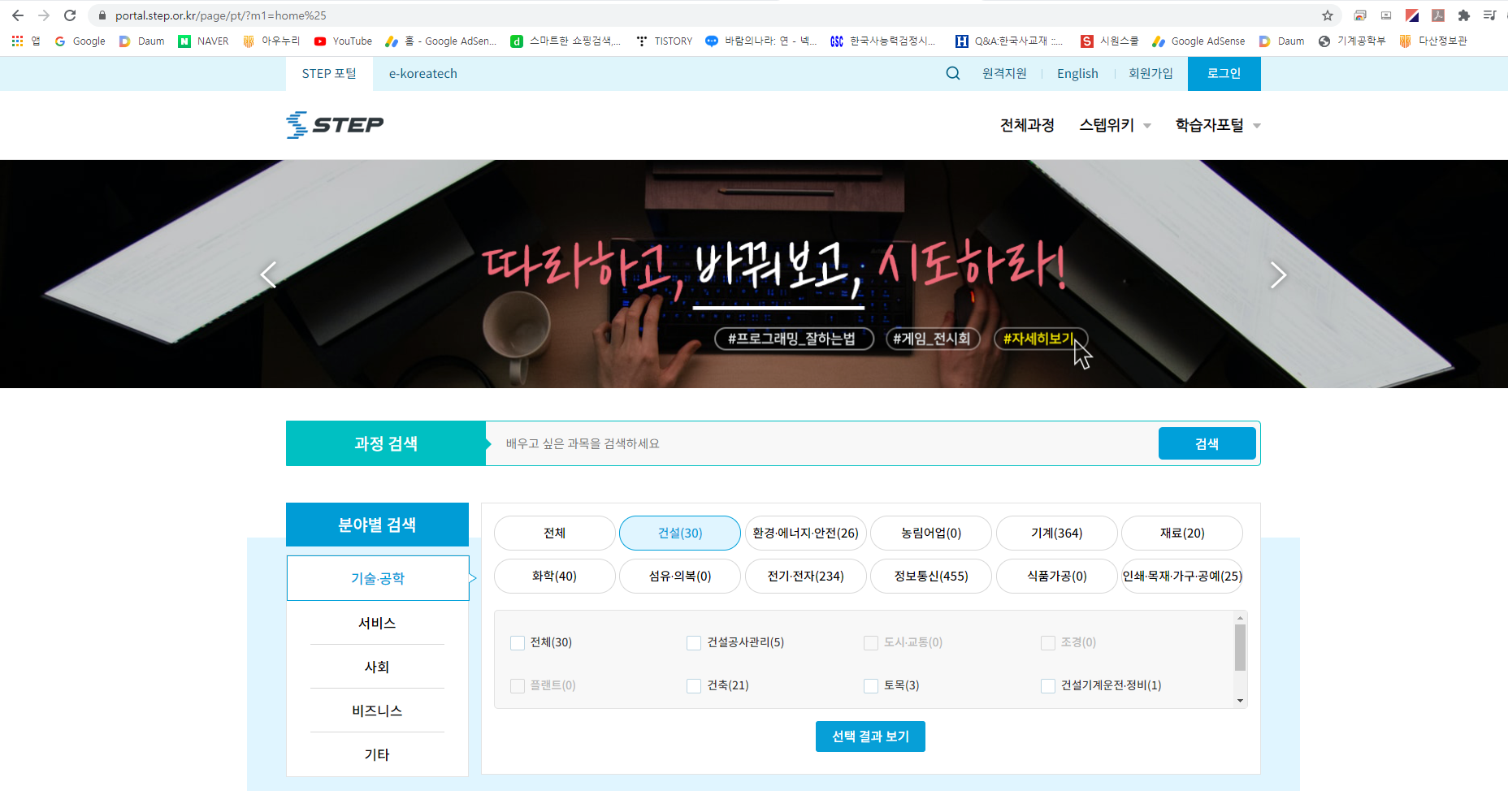 위의 사진이 STEP포털의 메인화면 입니다!