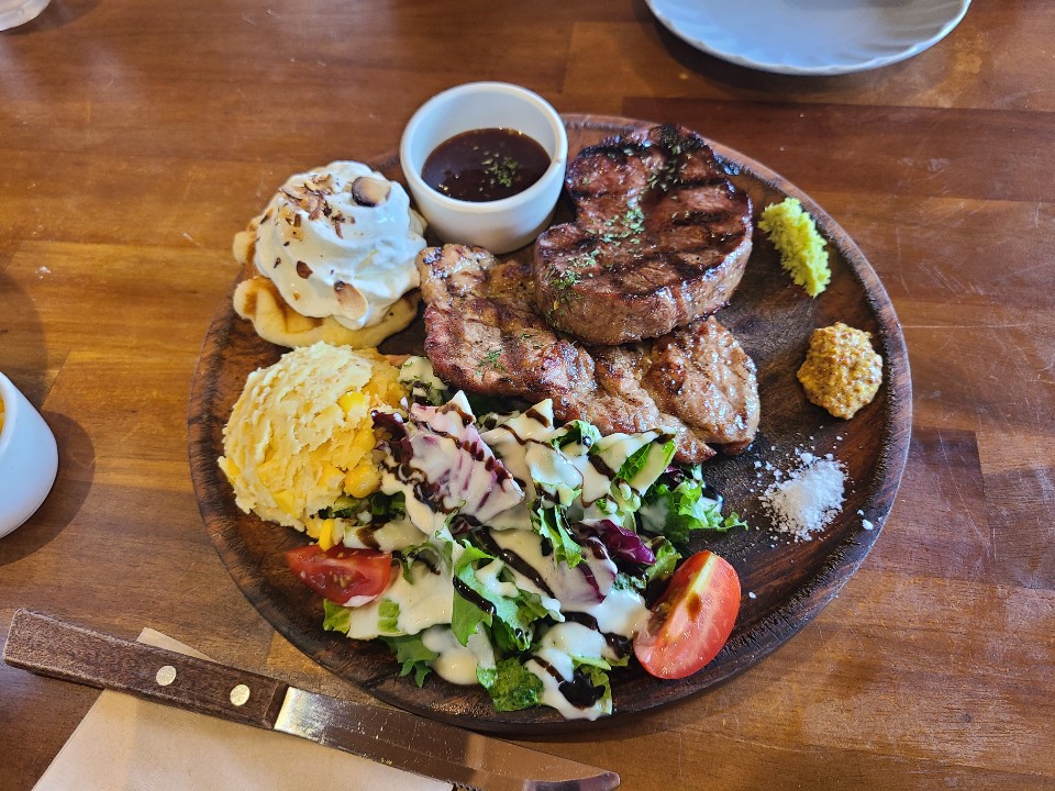 스테이크 메뉴가 있고, 오픈식 주방이다보니
