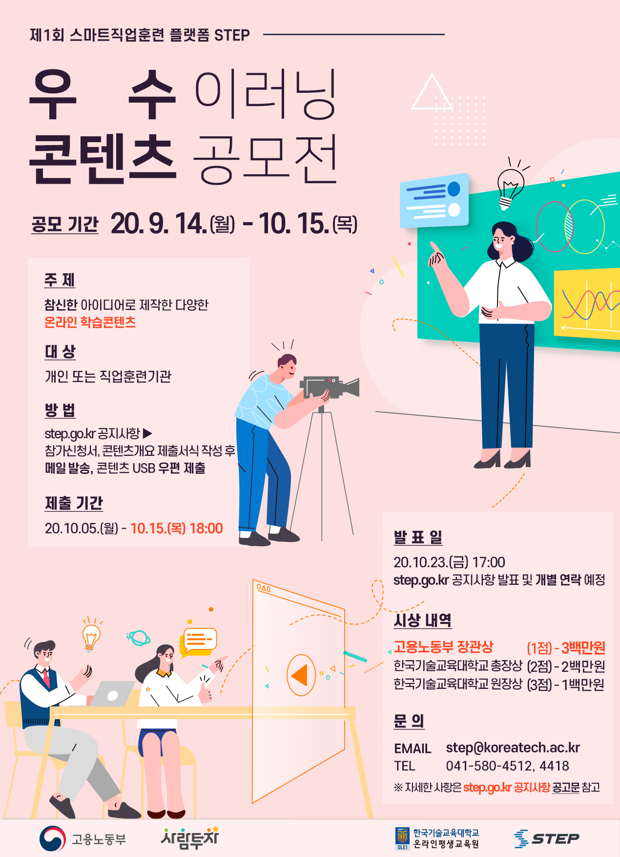 『STEP 우수 이러닝 콘텐츠 공모전』을 ‘20년 9월 14일부터 다음과 같이 공고합니다.