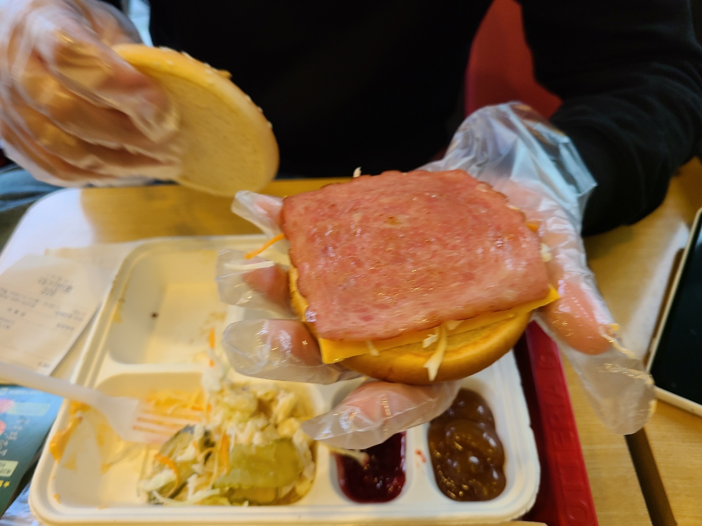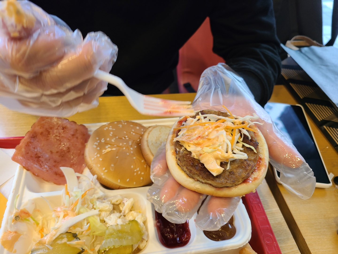 햄버거라기엔 의심스러운 비쥬얼이지만