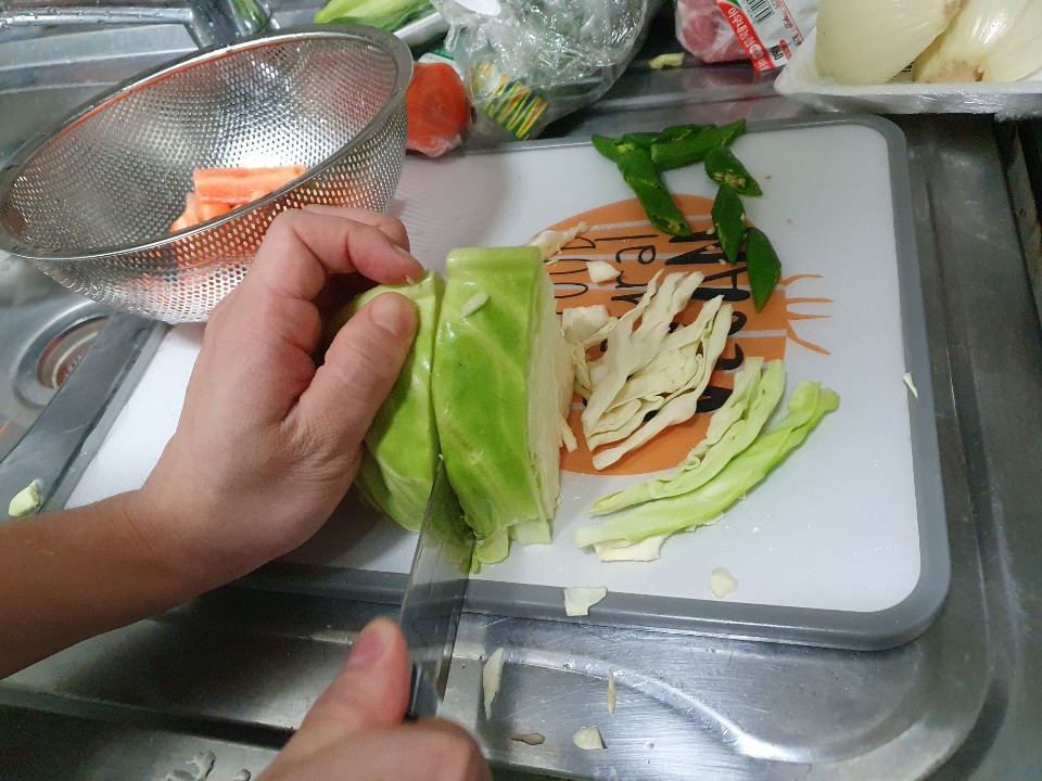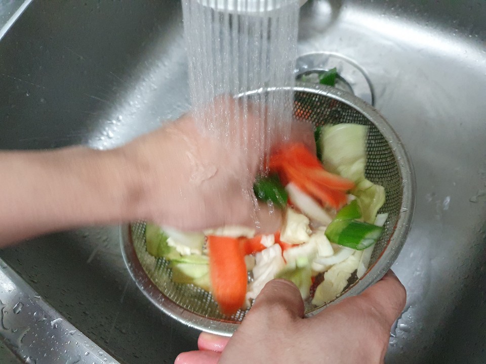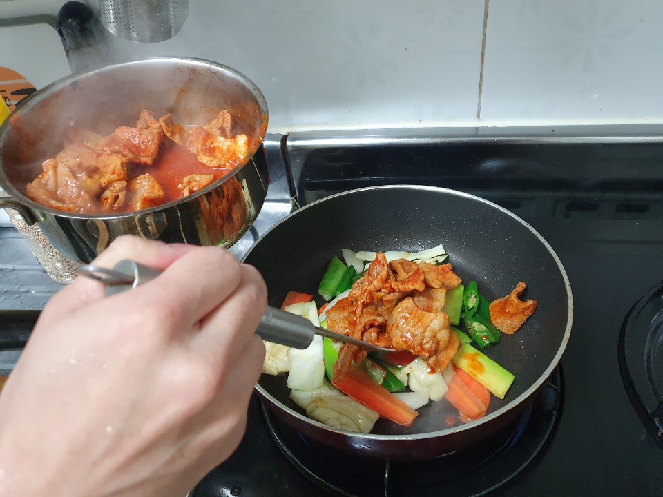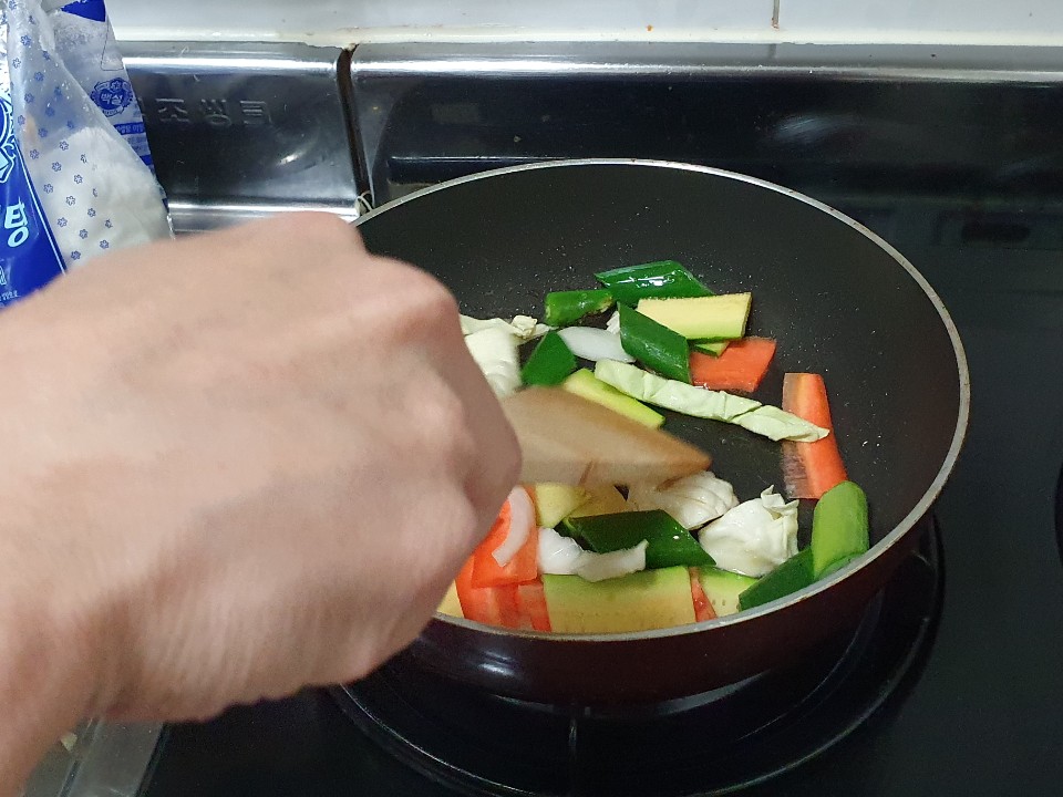 채소 2주먹 , 고기 2국자 이렇게 해서