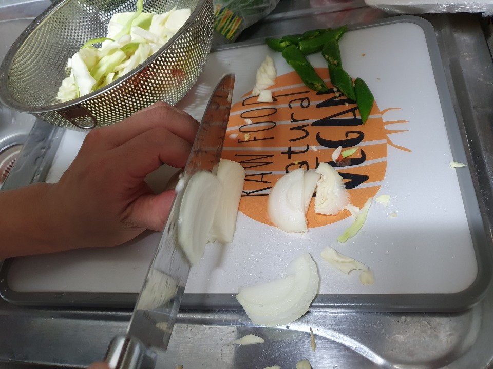 양파도 길쭉하게 잘라줄게요!