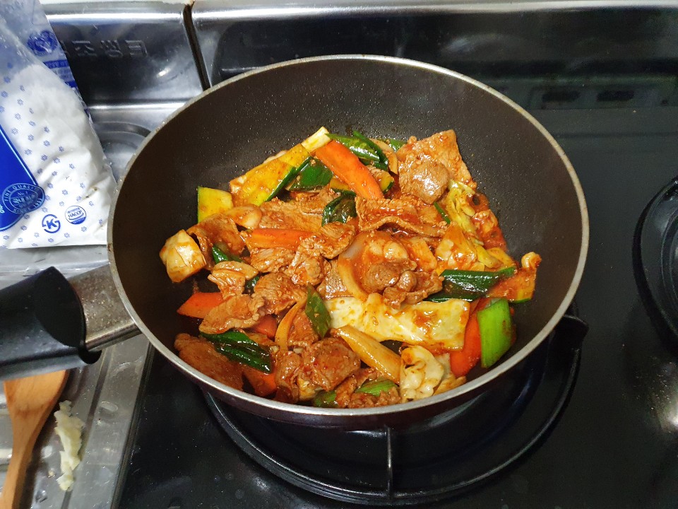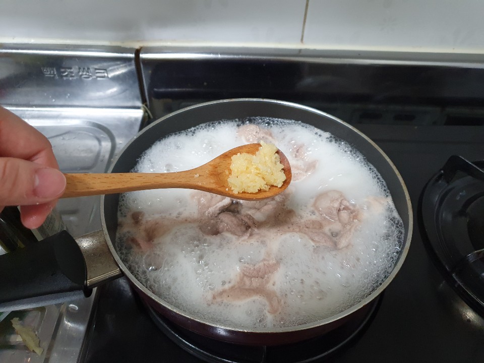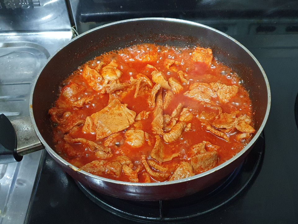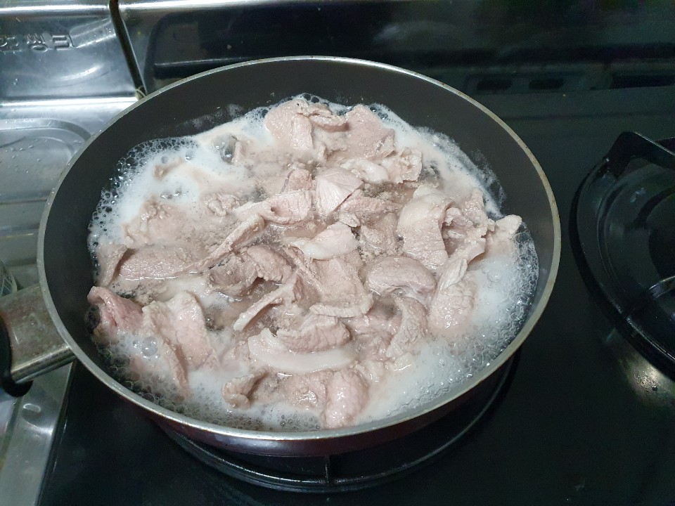 달달한 끓는물에 고기를 넣고