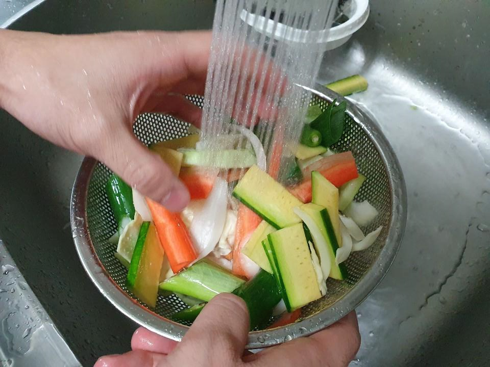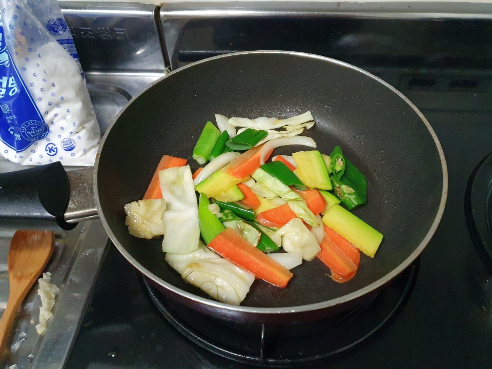 채소들을 볶아준 후