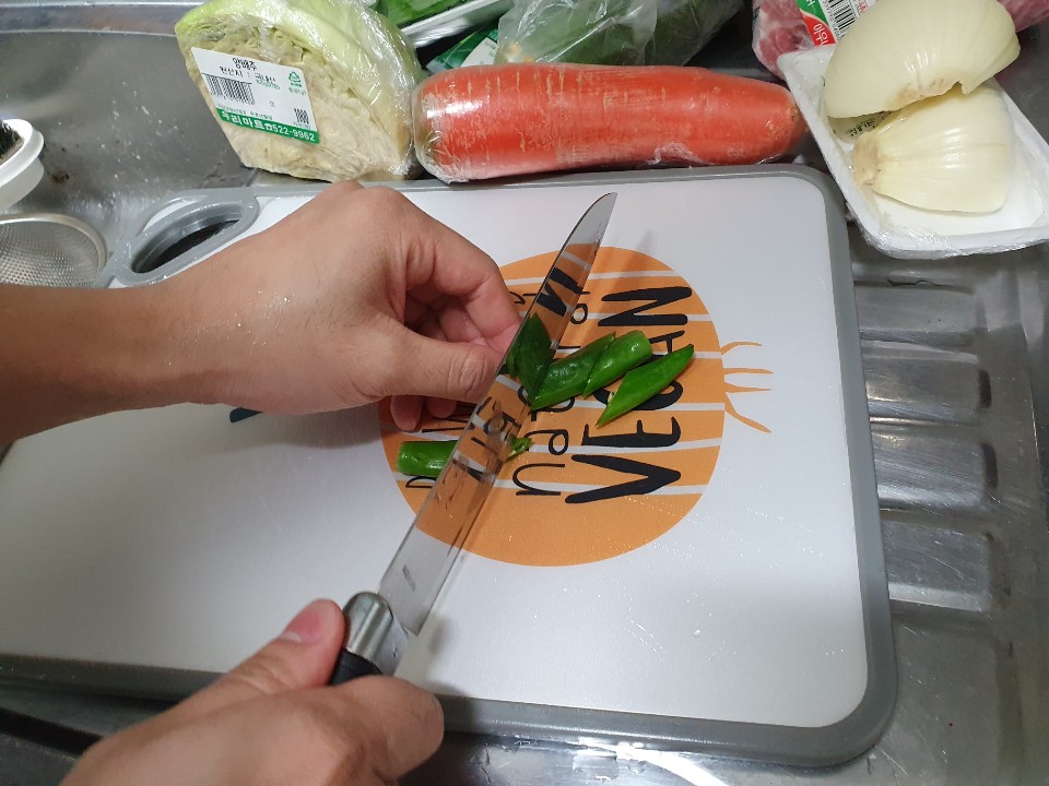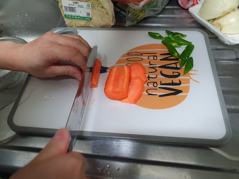 고추를 큼직큼직하게 잘라주세요.