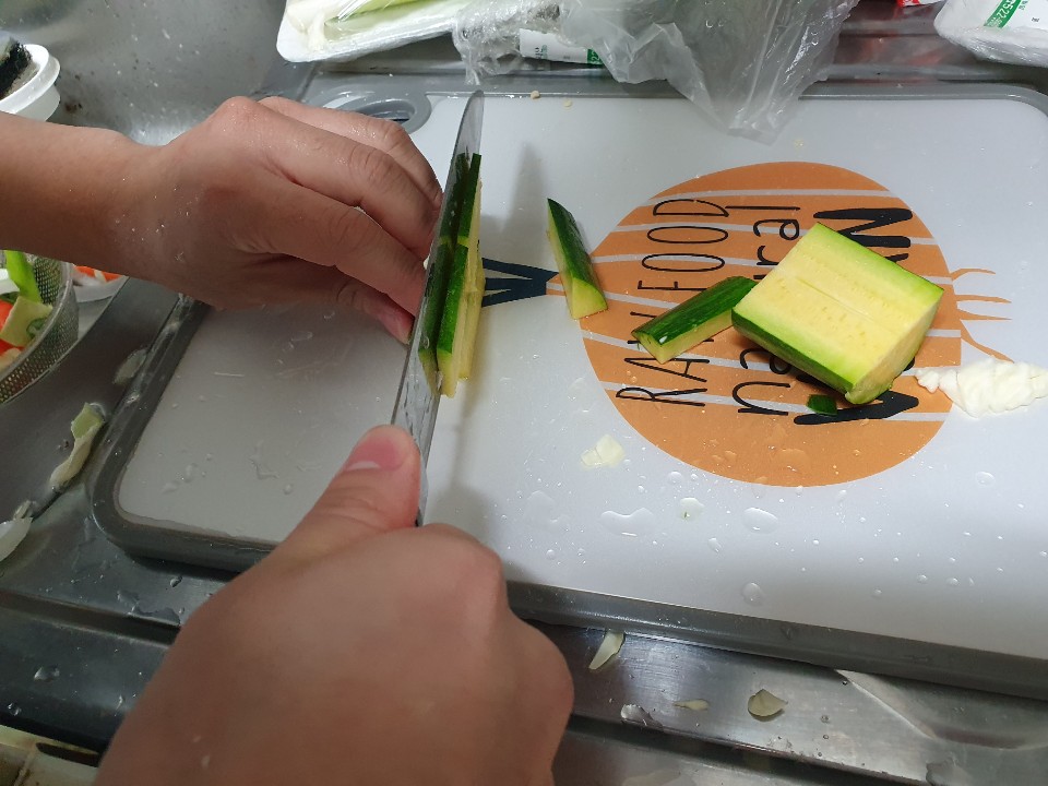 양배추도 납작하고 길게 잘라주세요 !!