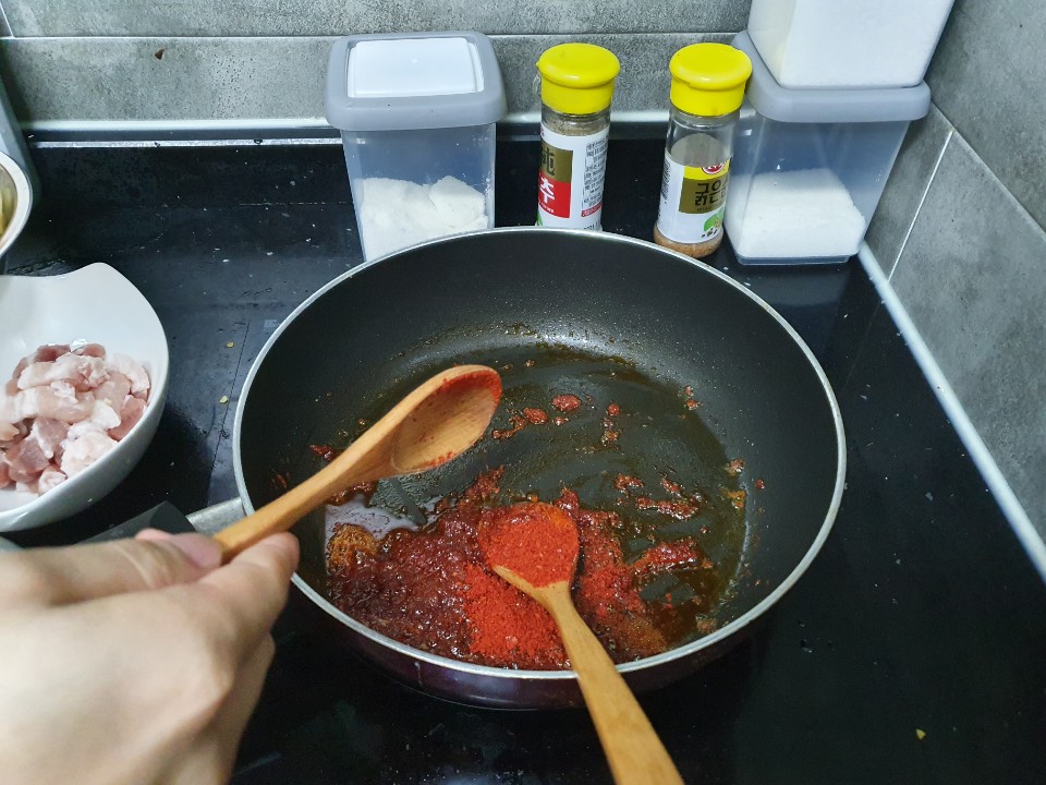 고추장을 먼저 볶아줄거에요!