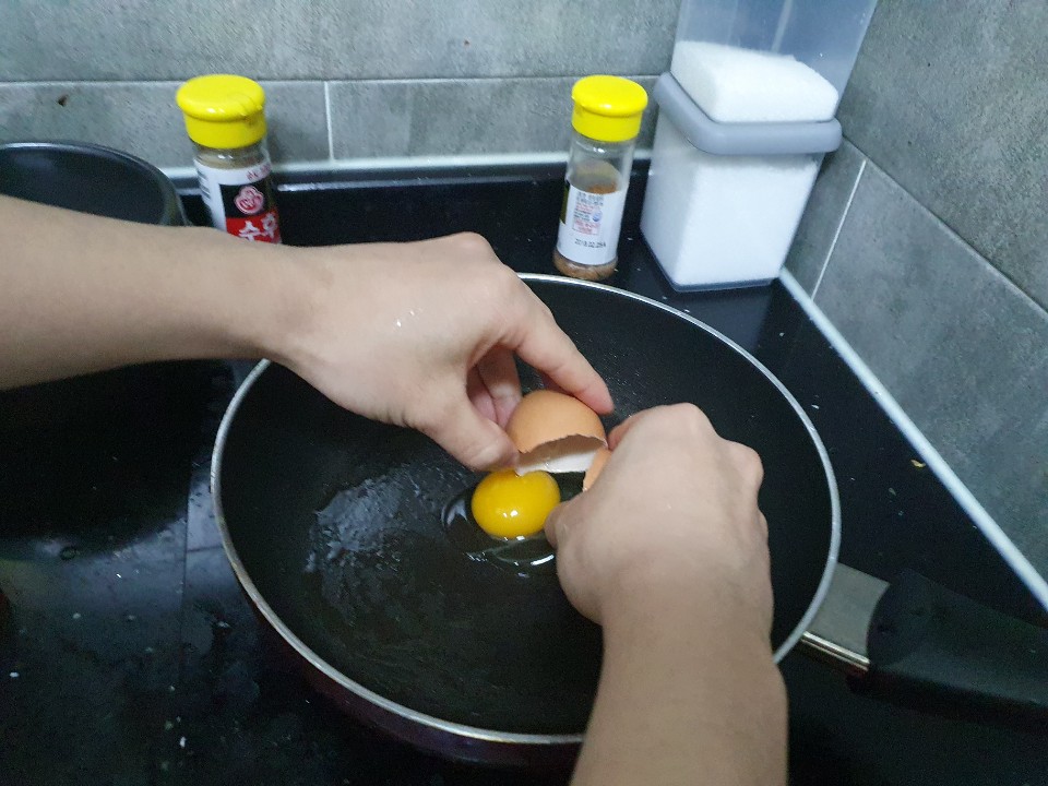 계란 노른자를 터트려서 밥이랑