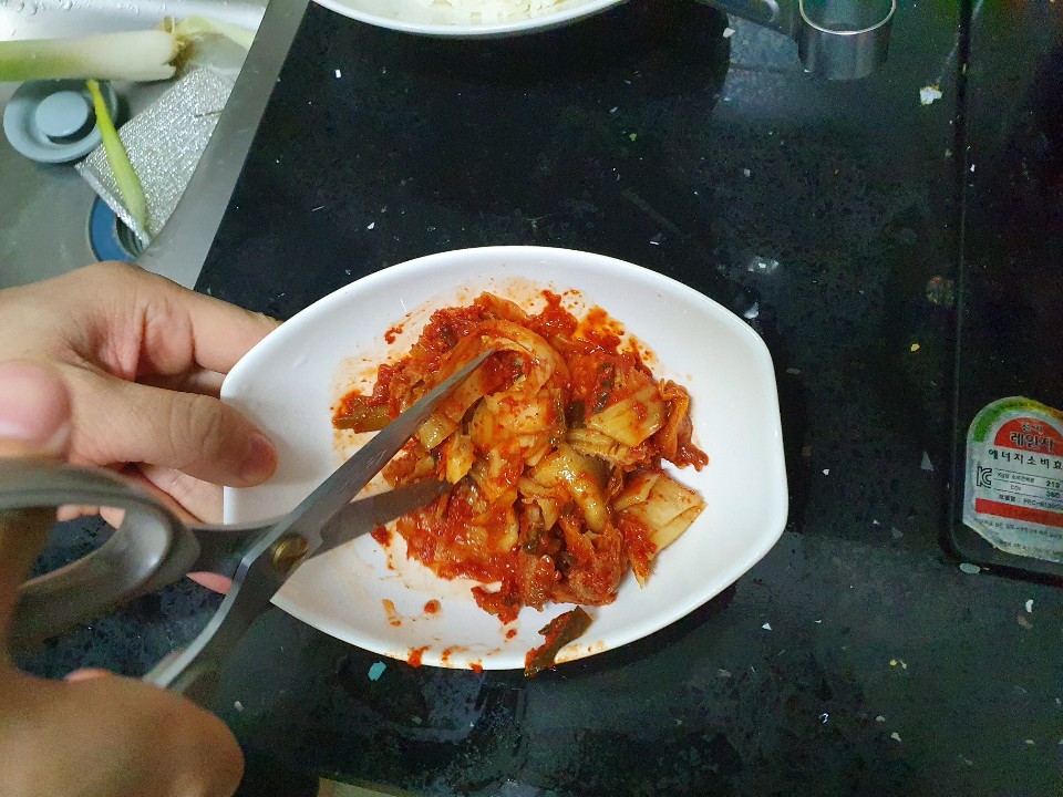 김치를 잘게 잘라서 준비해주세요!
