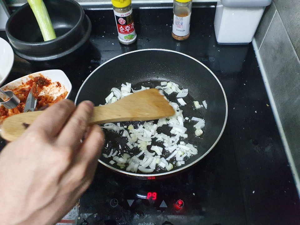 김치가 적당히 볶아지면