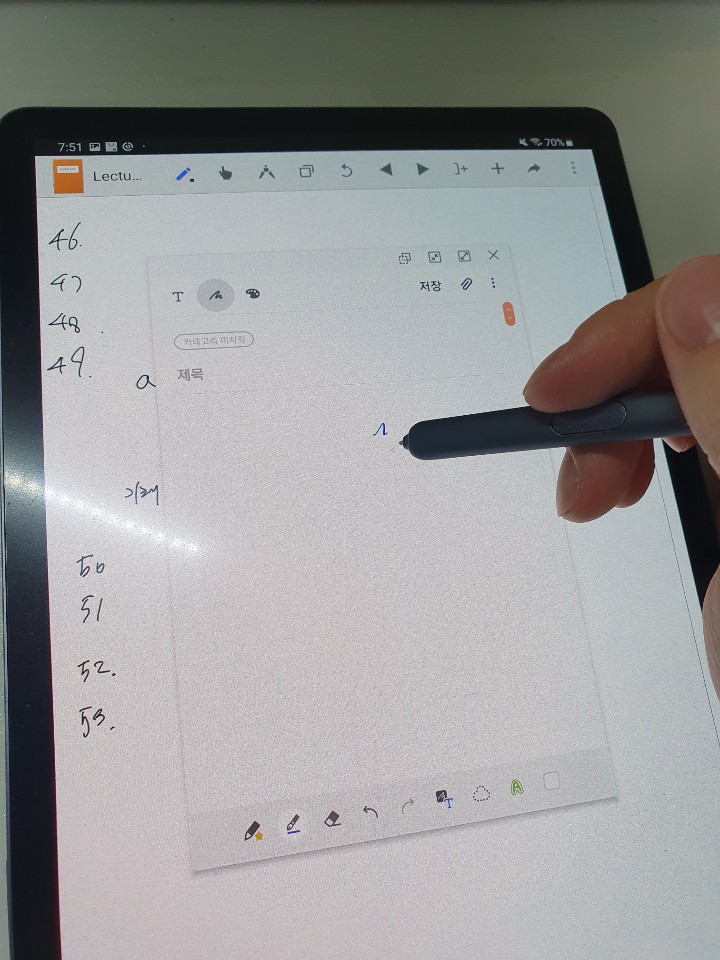 렉쳐노트 필기중에 버튼이 눌려서