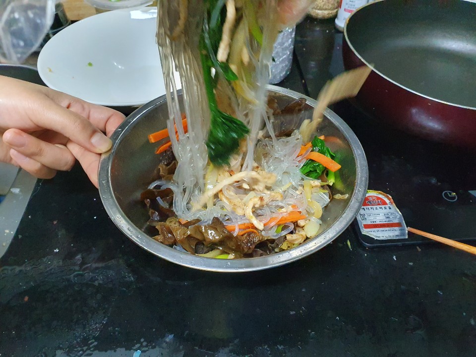 자른 당면에 볶아둔 재료들을 다 넣어주세요!