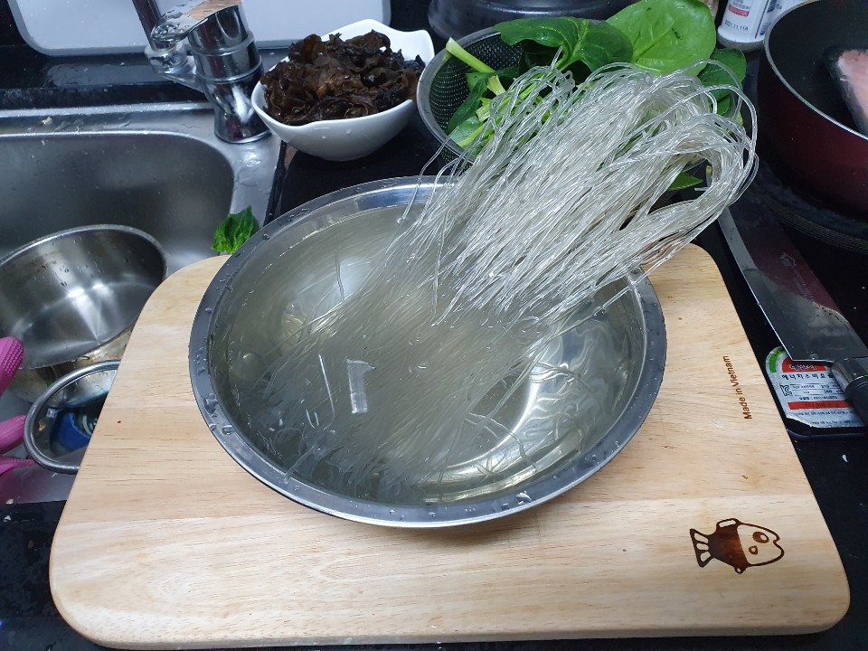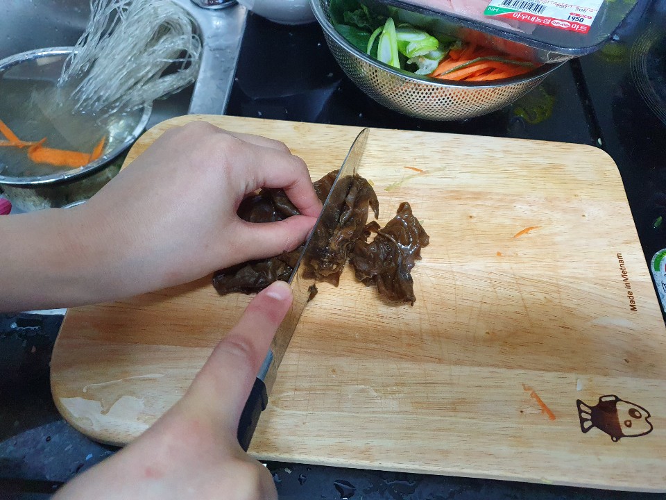 물기를 꼭~ 짜주고, 당면을 적당히 잘라주세요.