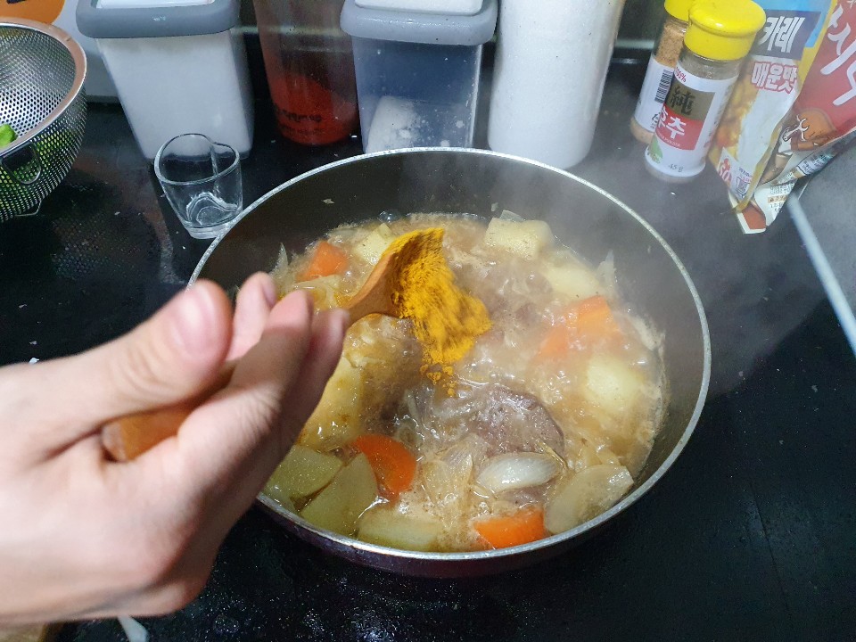 고형카레도 비슷한 양을 넣어주시면 됩니다.
