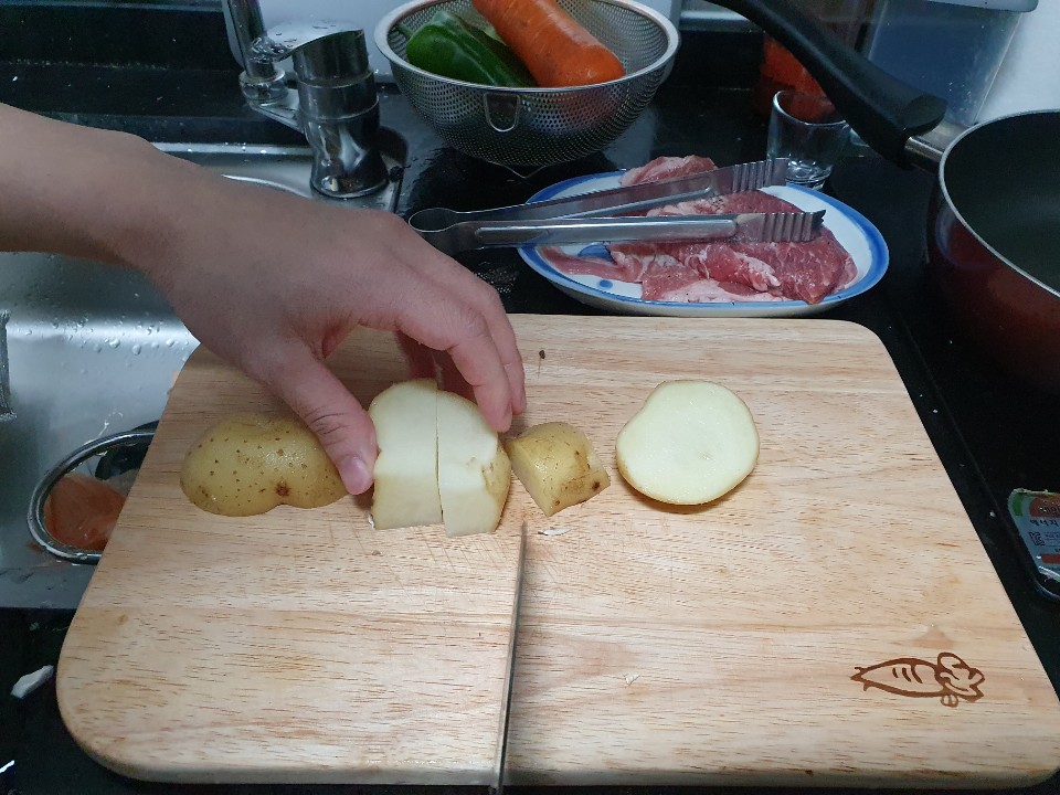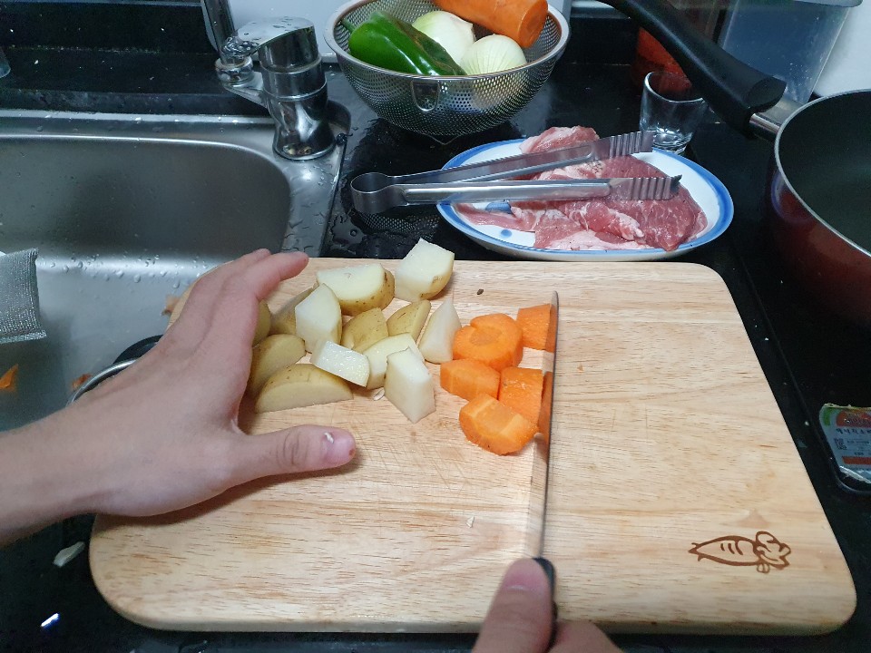 3. 감자, 당근을 적당한 크기로 잘라주세요!