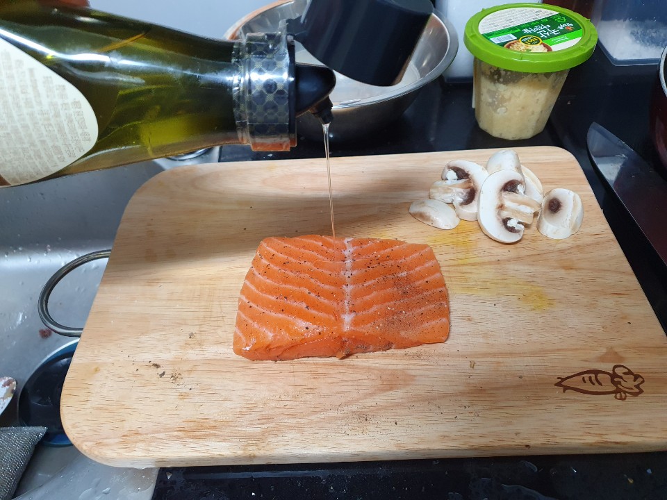 4. 연어 표면에 기름을 발라주세요~