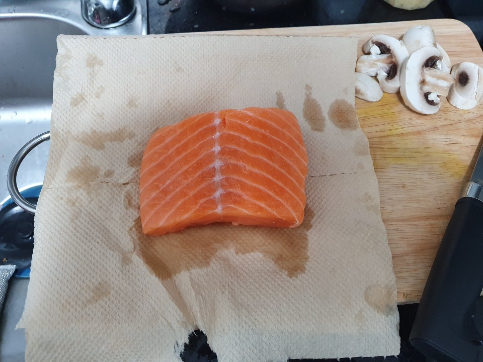 3. 준비된 연어를 키친타올로 물기를