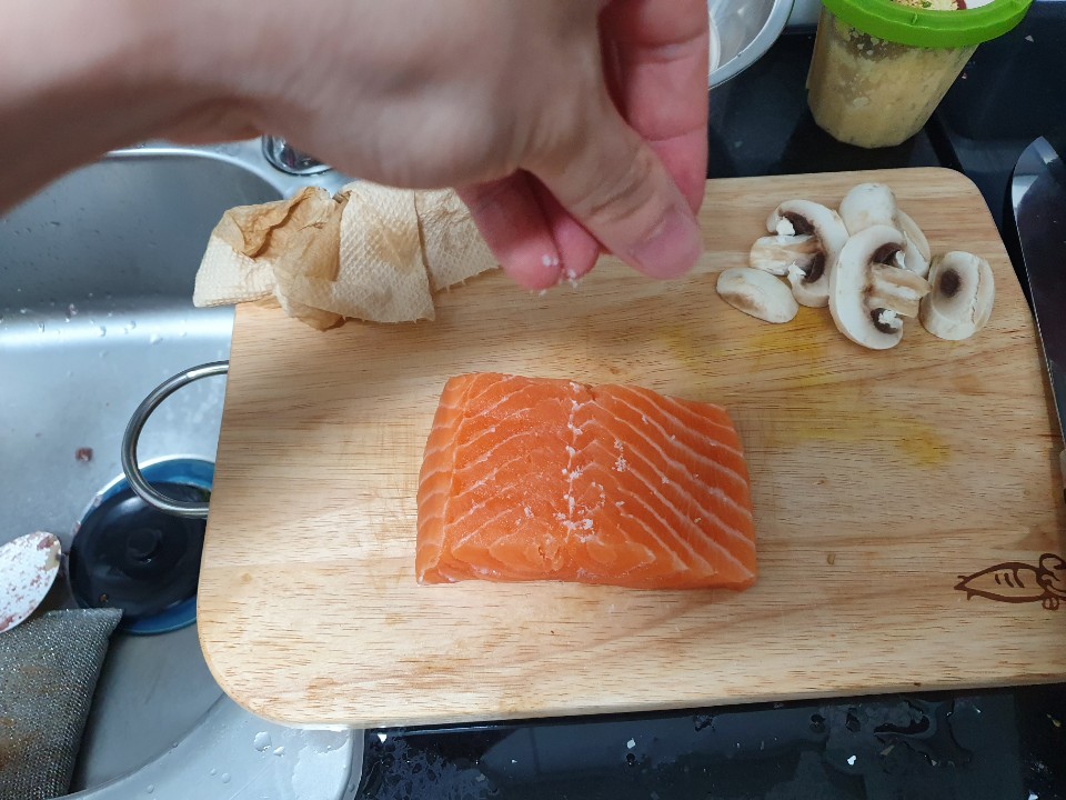 새송이 버섯으로 연어를 쓱싹 닦아주면 GOOD