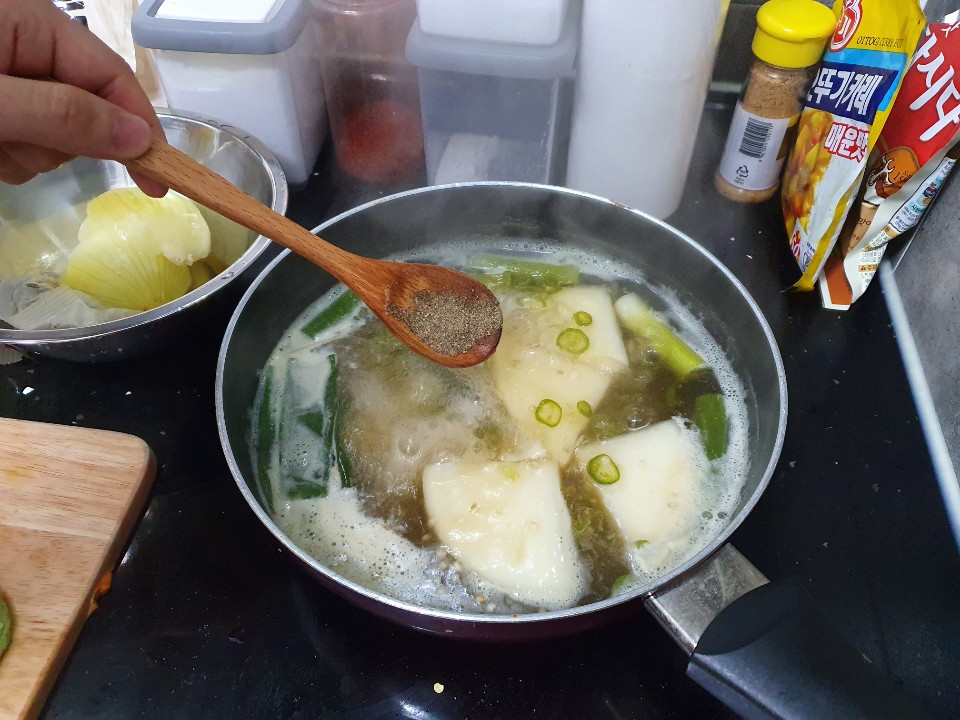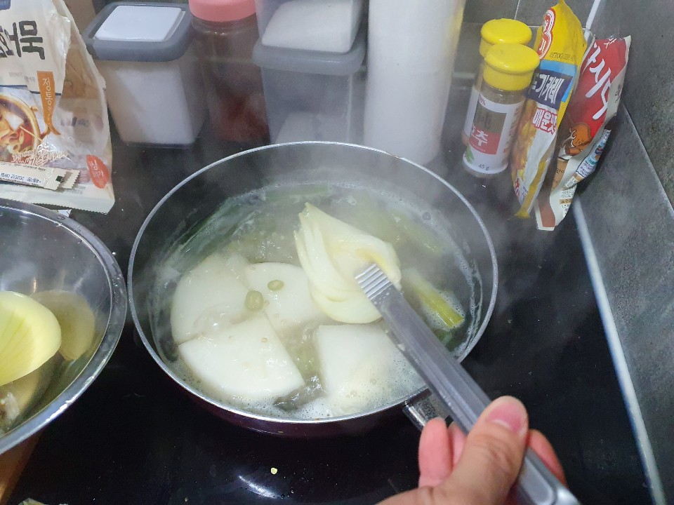 육수를 내주기 위해 멸치 다시팩을 사용했어요!