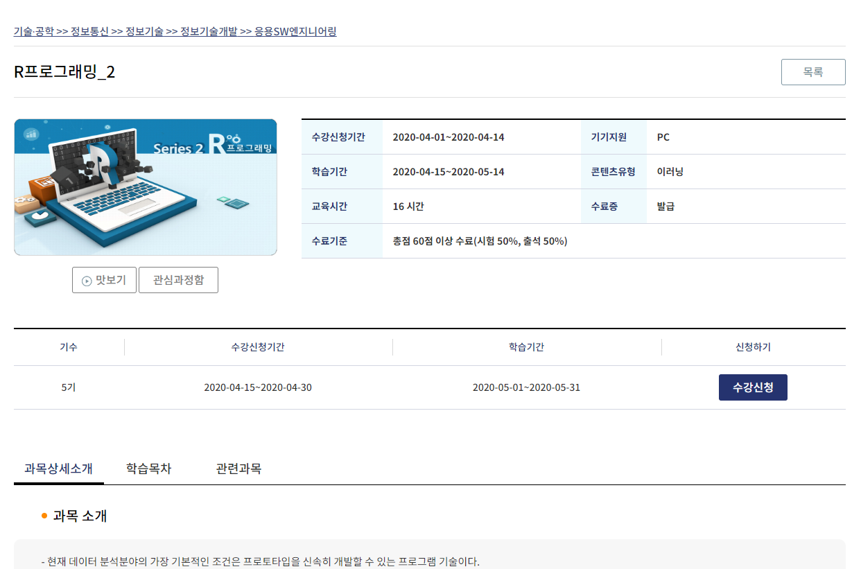 수강신청기간, 학습기간을 확인해보실 수 있고