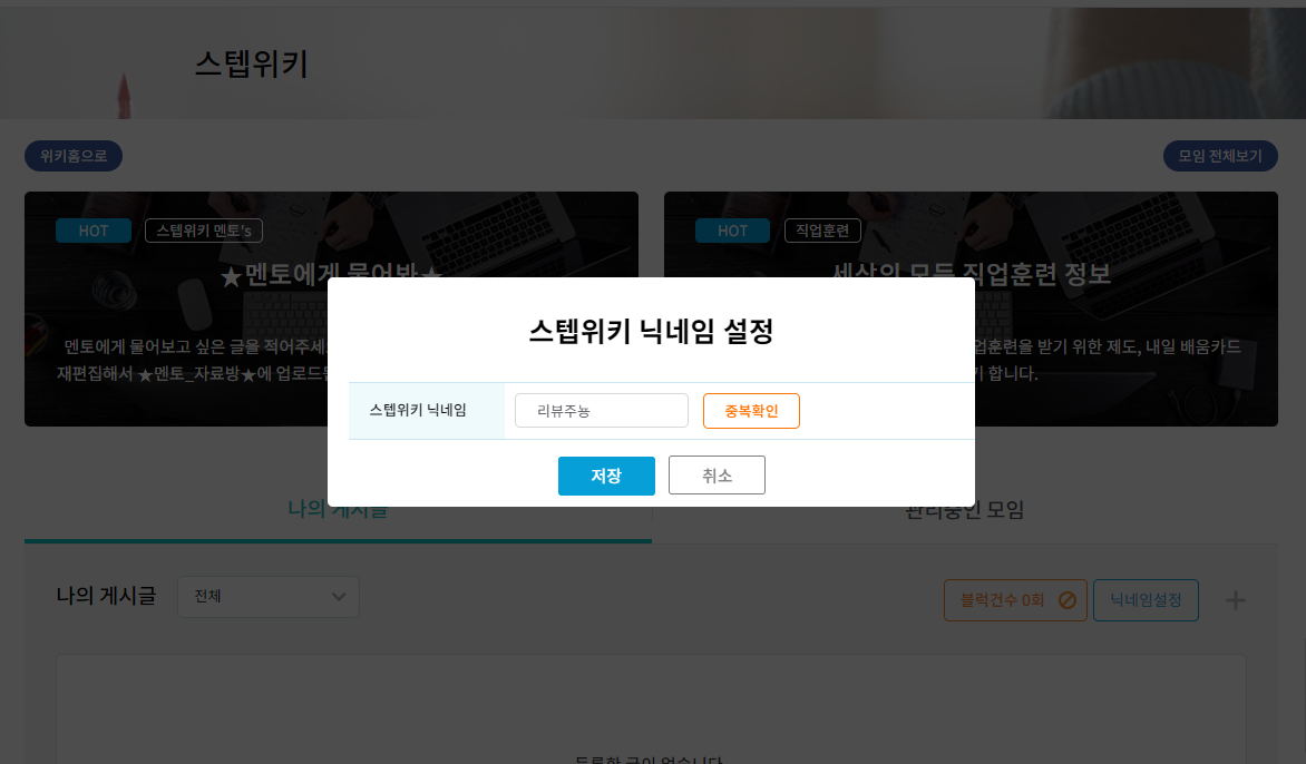 스텝위키를 이용하시려면 스텝위키 닉네임 설정이 필요해요 ~