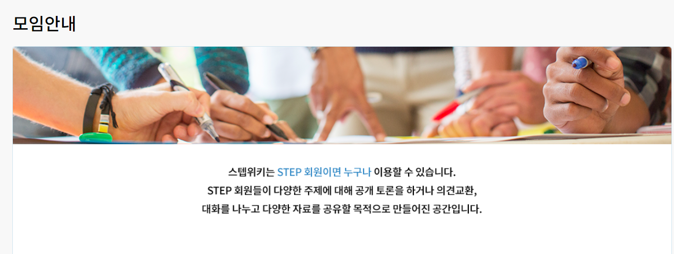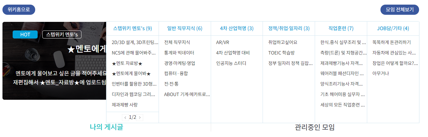 클릭하게되면 위와같이 정말 많은 분야의 스텝위키 모임을