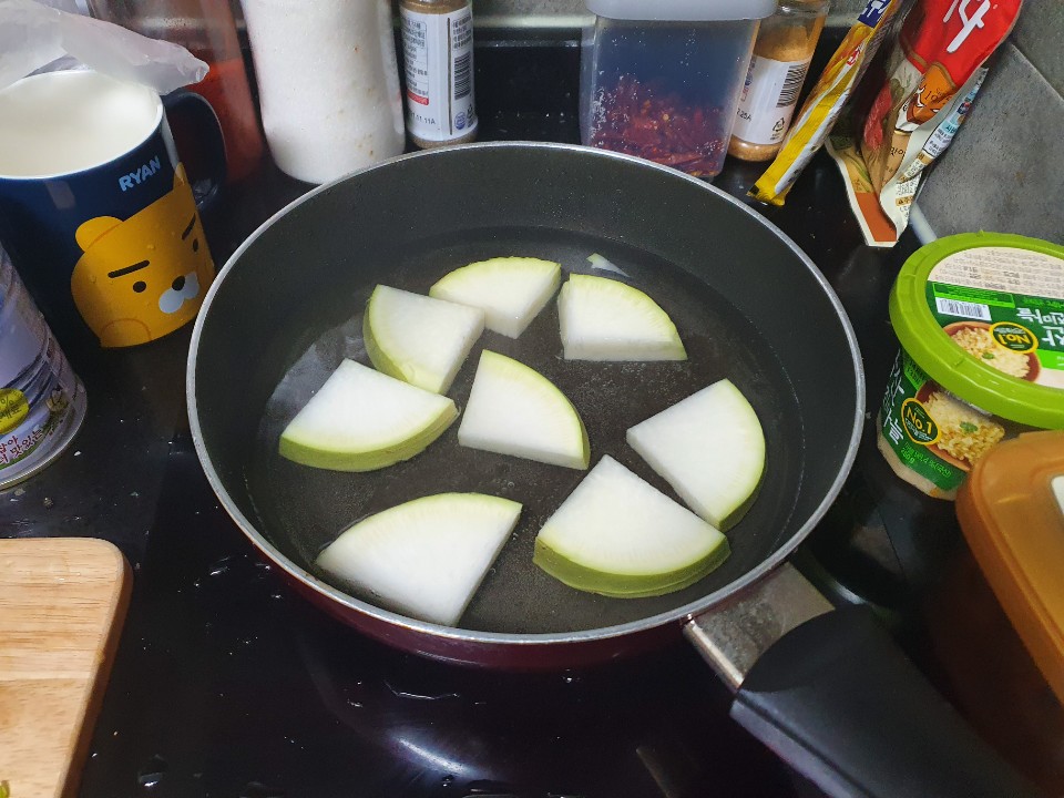 물을 무가 잠길정도로 받아주시고 불을 올려주세요!