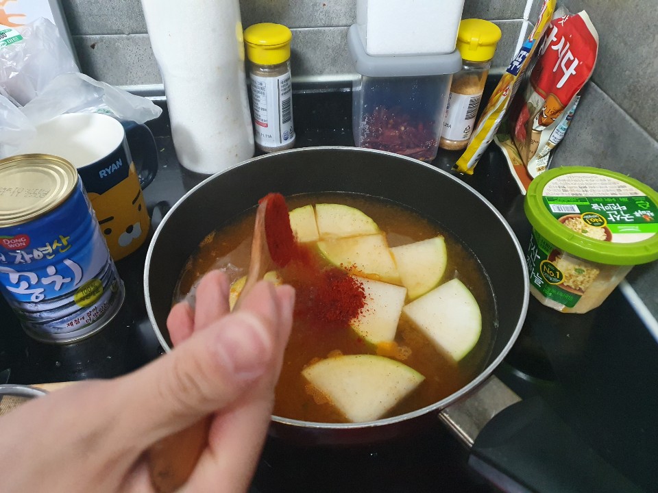 이대로 무가 익을때 까지 팔팔 끓여주세요!