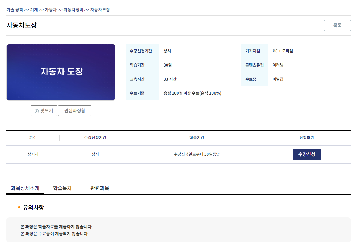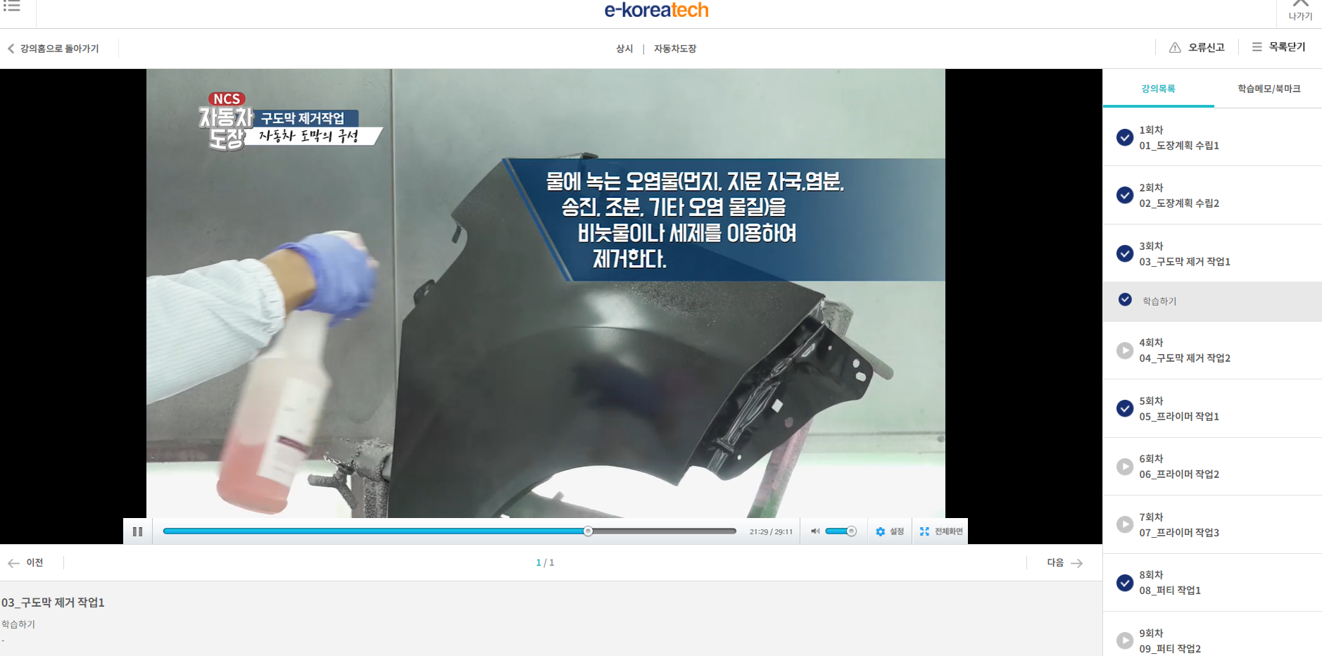 공지에 올라와있던 강의 중에 저는 자동차 도장을 선택했어요!