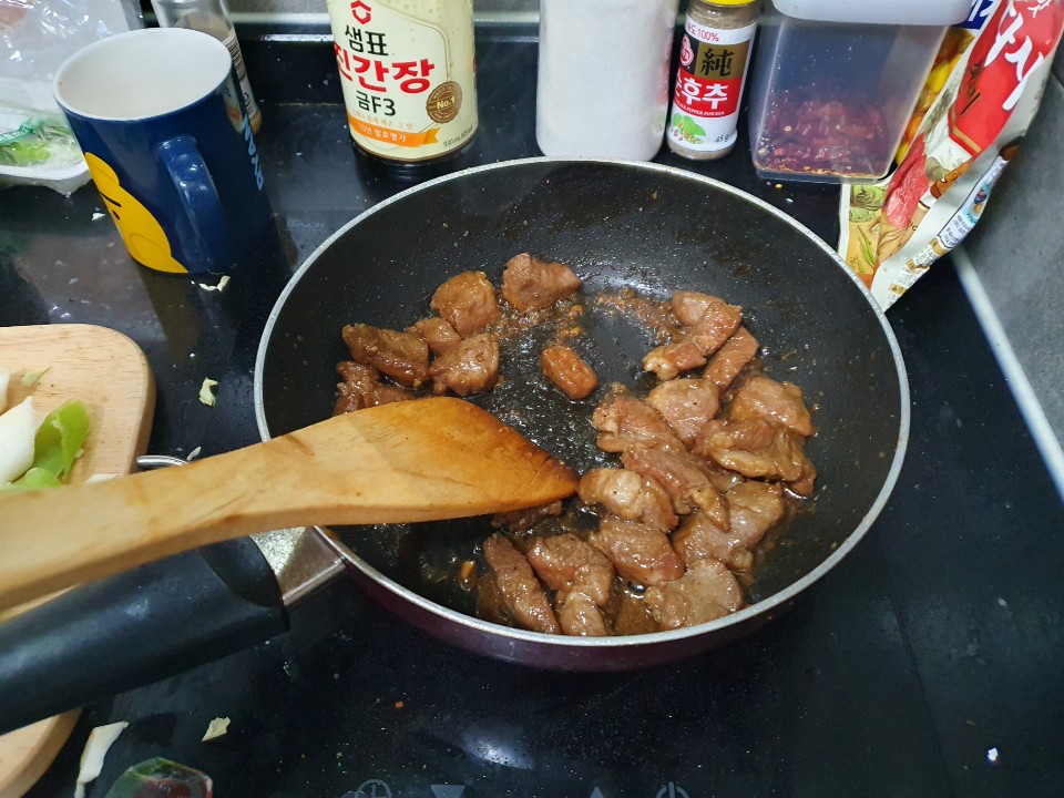 다음엔 양념장먼저 만들고 고기를 넣어야겠어요!