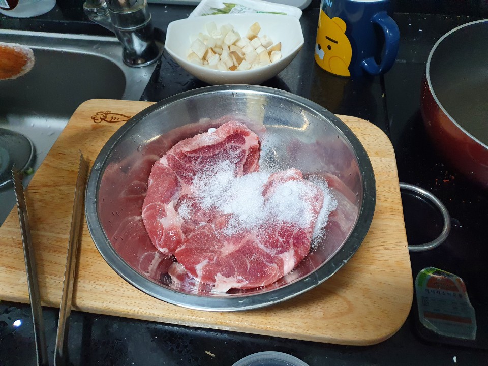 앞다리살이 저렴하기 때문에 식당에서는 앞다리살을