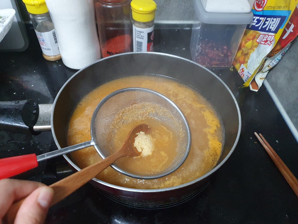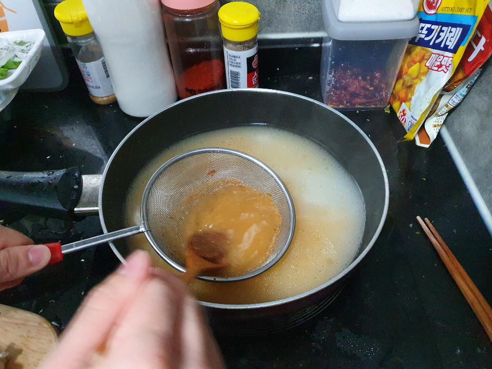 저는 깔금한 국물을 좋아해서 채에 걸러서 된장을 사용해요!