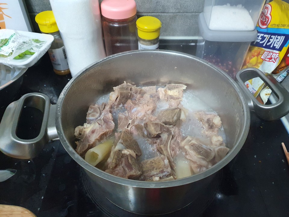 돼지등뼈는 물에 담궈두고 핏물을 빼주셔야해요!