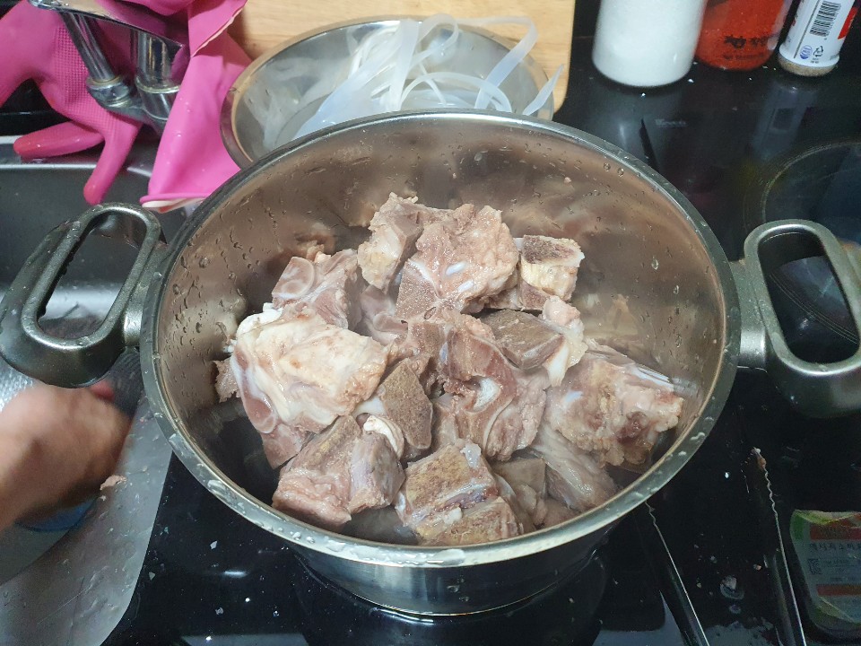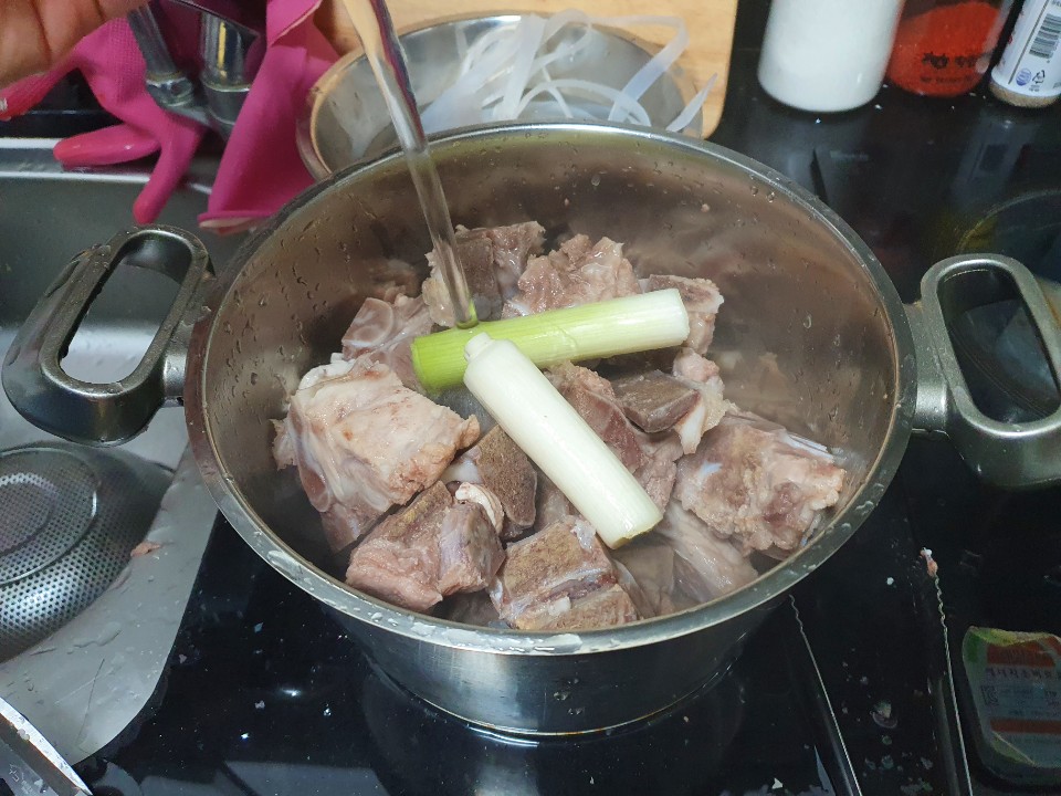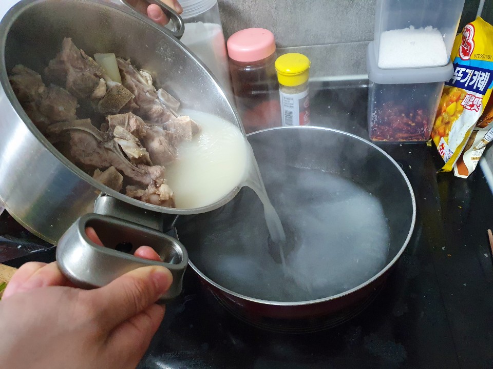 돼지등뼈는 물에 담궈두고 핏물을 빼주셔야해요!