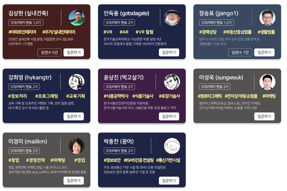 멘토님들은 스텝위키를 통해서 만나볼 수 있는데요~