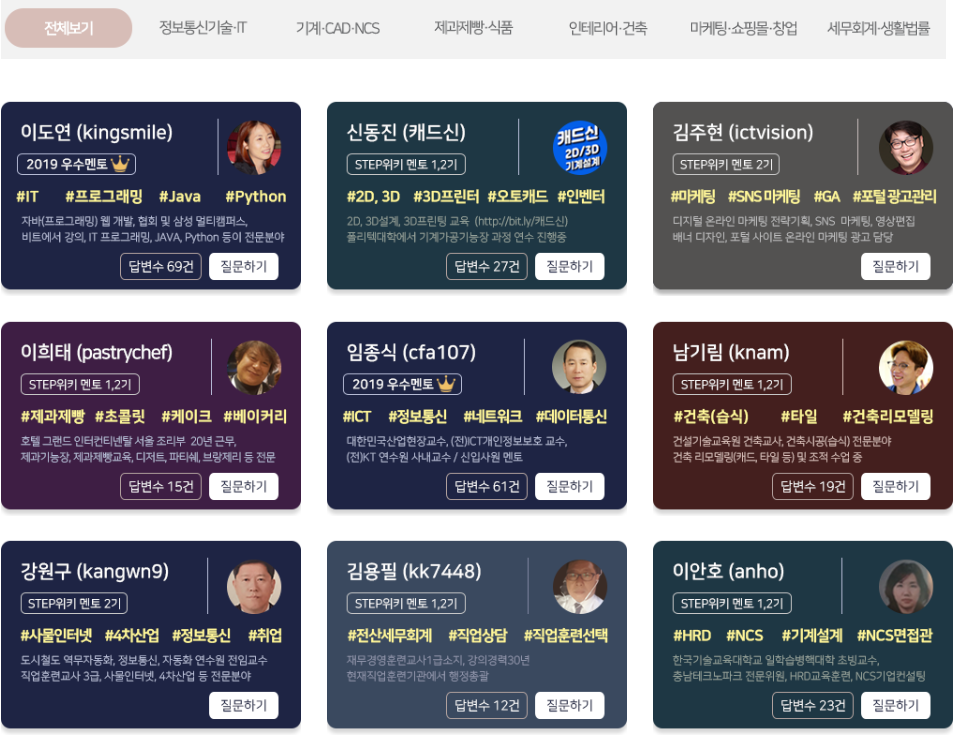 각 분야마다 다양한 분야의 멘토님들이 있어요!