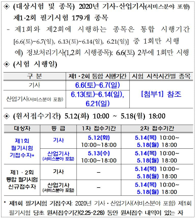 2020년 1,2차 기사시험이 6월 7일에 실시 되는데요~
