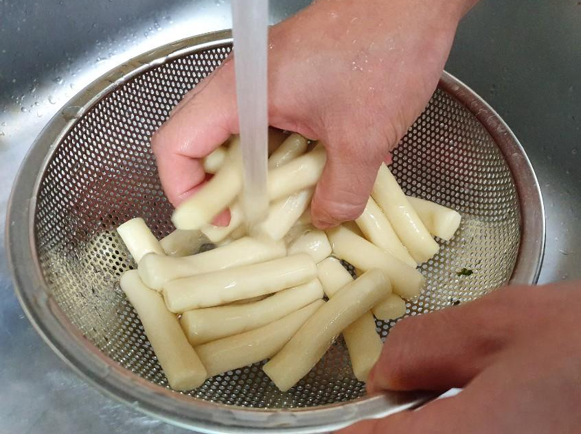 밀떡을 흐르는물에 씻어줍시다~