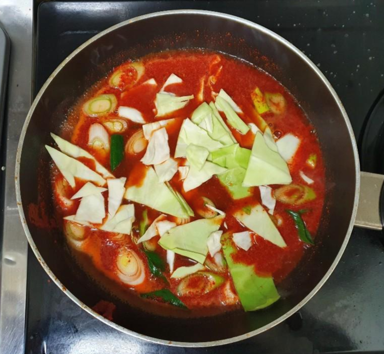 분식집 떡볶이에 있는 양배추